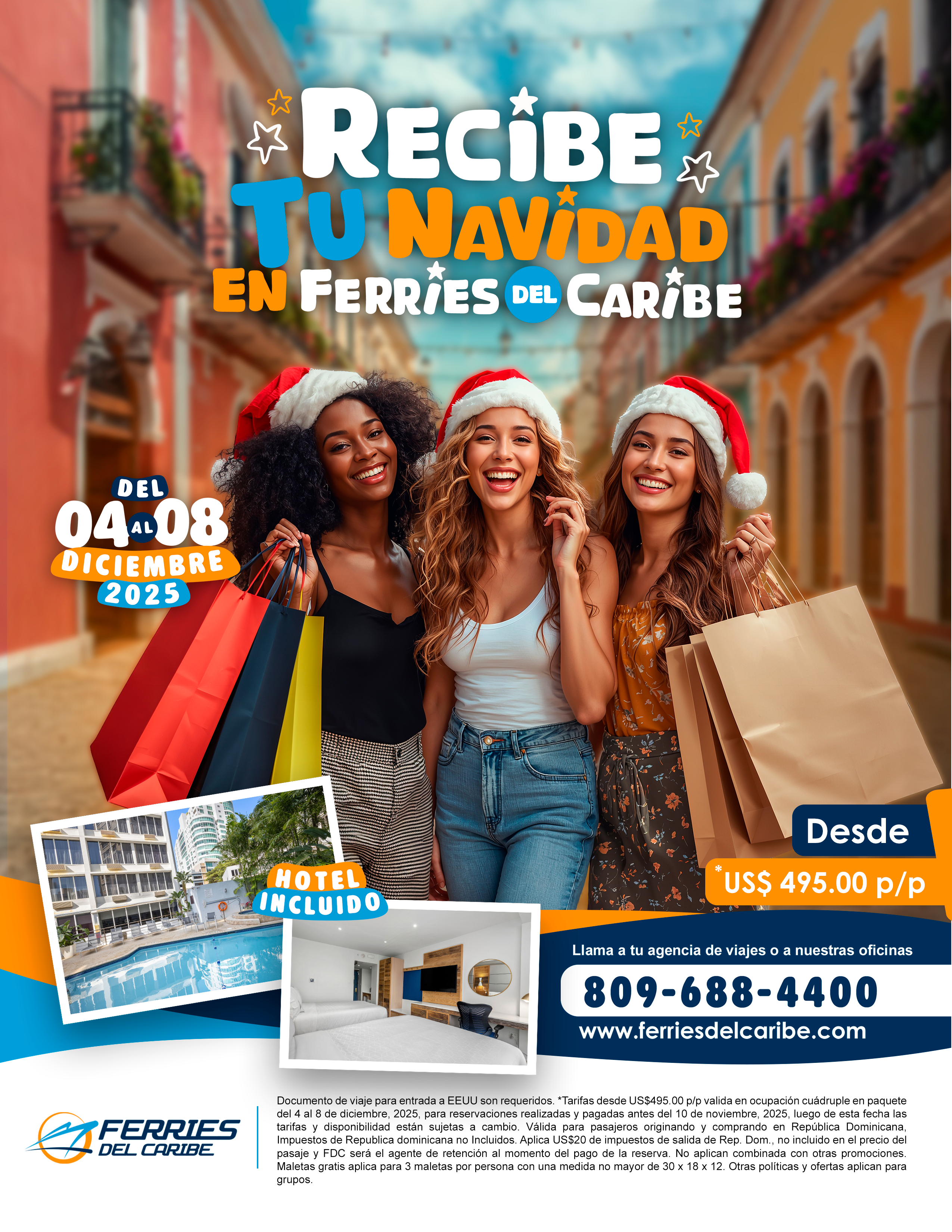 Navidad llegó en Ferries del Caribe y con ella, momentos para compartir y celebrar, viaja a Puerto Rico y compra todo lo que necesitas, Con este paquete que incluye excursión de compra al Premiun Outles , que aquí no pesamos tu equipaje.